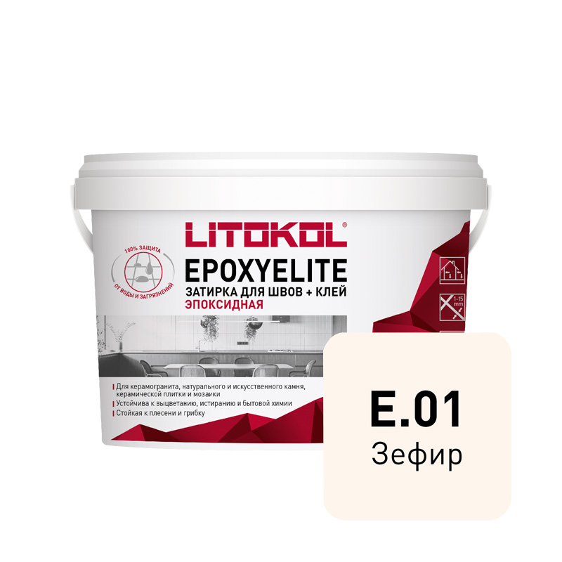 Litokol EPOXYELITE / 1 кг. Эпоксидная затирка + клей для различных видов облицовки. "E.01 ЗЕФИР"